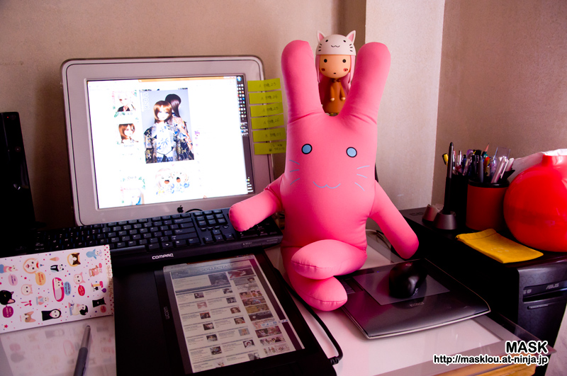 比較推薦的是有愛人士做的《Tiger&Bunny》的Bunny公仔(大量出貨),材料是素泡沫粒子,就是那種捏起來像流沙但是又很軟的那種料做餡,我是看中這點,加上體積有70cm高,這簡直就是給老爺量身定做的(妄想,其實我也想要)二話不說跑去論壇跟帖子鏈接預定。