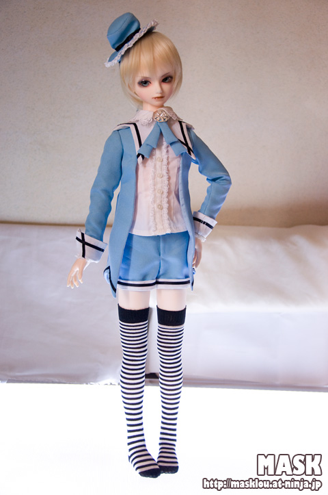 這是DH出的SD10男穿的衣服,雖然查看了SD10男的身材數據,但還是冒險性地購入這套,衣服保存得不錯,而且二手的便宜多了。實際穿著,砂糖君穿得下!啊,真是太好了(其實在冒冷汗,擔心穿不下。)數據和實際的差距是,砂糖君的肩圍還是 寬些,衣物穿著效果肩膀顯得臃腫不少,腰也長些,襯衣腰長有點顯短,袖子長度是沒問題。而褲子意外地腰圍大了點,照片上的褲子高度是用橡筋固定後拍下來的,不管它的話它會自然滑落,變成“孖煙筒”HAHA。