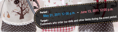 05:訂單滿$500:隨機假發一件 + 鞋一件(尺寸可選)+ ZUZU 眠頭“Corni,Chu,Frise”+ MINIMI ZUZU 身(有妝和眼的3款一個組合)“抽選卷”一張(活動有21組送出)這個是要抽獎才會有的哦。